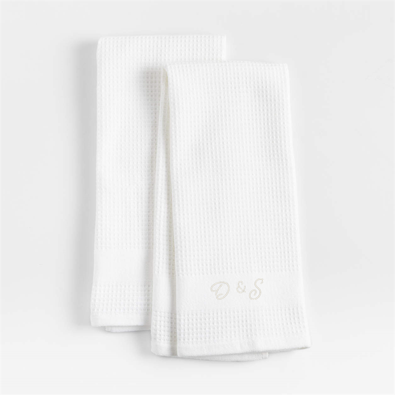 In stock and ready to ship Loading...Crate & BarrelSKU 493386Personalized Waffle-Terry White Organic Cotton Kitchen Towels, Set of 2$37.95includes $15 personalization feeFree Shipping Eligible0 of 1 purchasedAdd to Cart