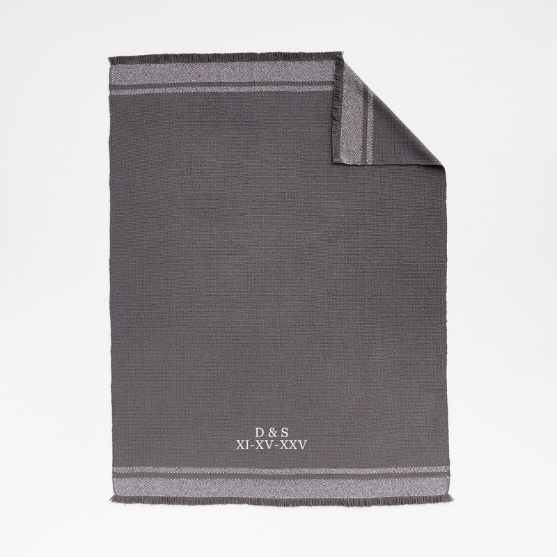 No longer available online. Loading...Crate & BarrelSKU 540304Personalized Weekend Storm Grey Organic Cotton 70"x55" Fringe Throw BlanketClearance $65.97 reg. $145.95includes $16 personalization feeShips free0 of 1 purchasedAdd to Cart