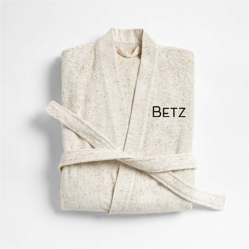 Purchase now and we'll ship when it's available. This item is currently on backorder.Loading...Crate & BarrelSKU 424220Personalized Organic Large/Extra-Large Turkish Natural Beige Fleck Bathrobe$134.95includes $15 personalization feeShips free0 of 1 purchasedAdd to Cart