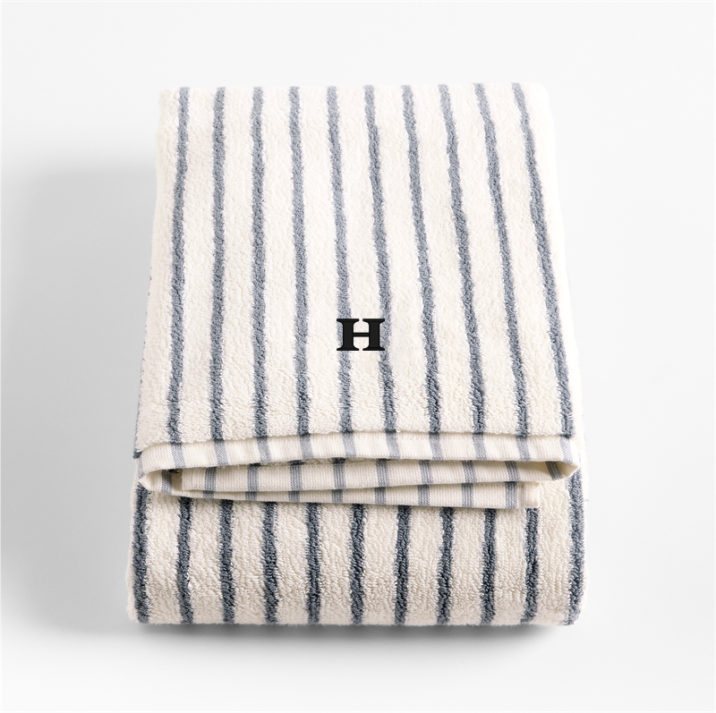 In stock and ready to ship Loading...Crate & BarrelSKU 626989Personalized Organic Turkish Cotton Pampas Ivory and Evening Blue Stripe Bath Towel$59.95includes $15 personalization feeShips free0 of 2 purchasedAdd to Cart