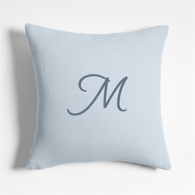 In stock and ready to ship Loading...Crate & BarrelSKU 655156Personalized Organic Cotton Monogrammable 20"x20" Sky Blue Throw Pillow with Feather InsertClearance $45.47 reg. $55.00includes $16 personalization feeShips free0 of 1 purchasedAdd to Cart