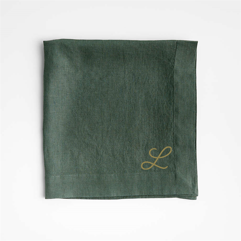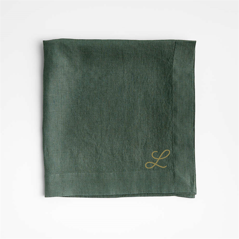 In stock and ready to ship Loading...Crate & BarrelSKU 543892Personalized Marin Pine Green EUROPEAN FLAX â„¢-Certified Linen Napkin, Set of 4$74.80includes $15 personalization feeFree Shipping Eligible0 of 1 purchasedAdd to Cart