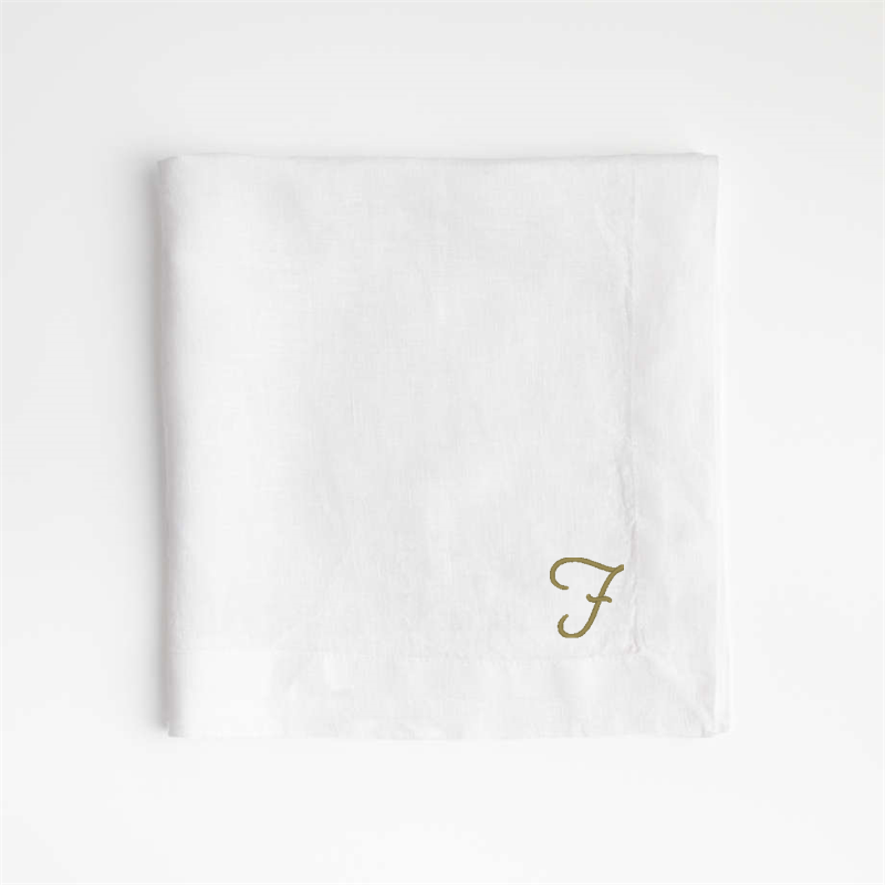In stock and ready to ship Loading...Crate & BarrelSKU 544044Personalized Marin White EUROPEAN FLAX ™-Certified Linen Napkin, Set of 4$74.80includes $15 personalization feeShips free0 of 1 purchasedAdd to Cart
