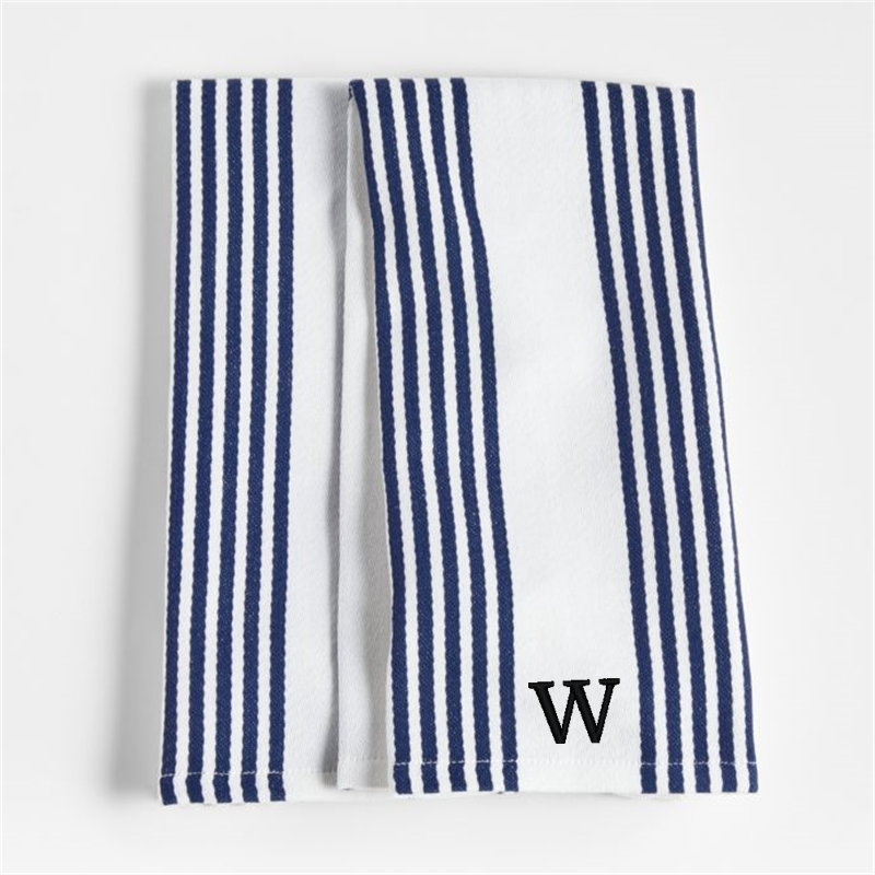 In stock and ready to ship Loading...Crate & BarrelSKU 463963Personalized Cuisine White with Indigo Stripe Organic Cotton Dish Towels, Set of 2$37.95includes $15 personalization feeFree Shipping Eligible0 of 2 purchasedAdd to Cart