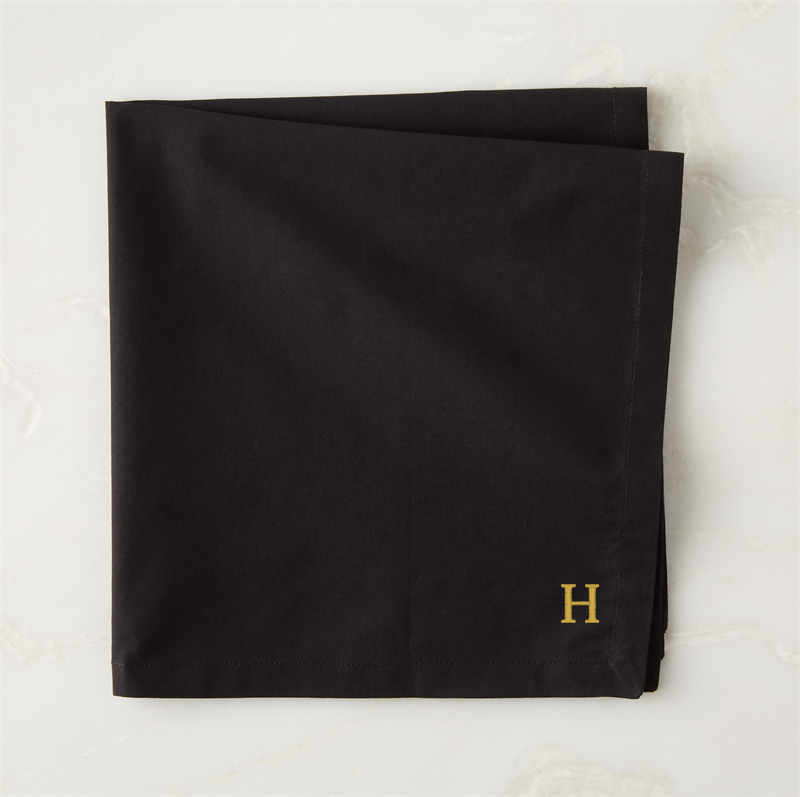 See in-stock & shipping info on CB2 Loading...CB2SKU 672841Personalized Poplin Black Cloth Napkins Set of 4Set Savings $34.50 open stock $34.80includes $15 personalization fee0 of 1 purchasedBuy on CB2