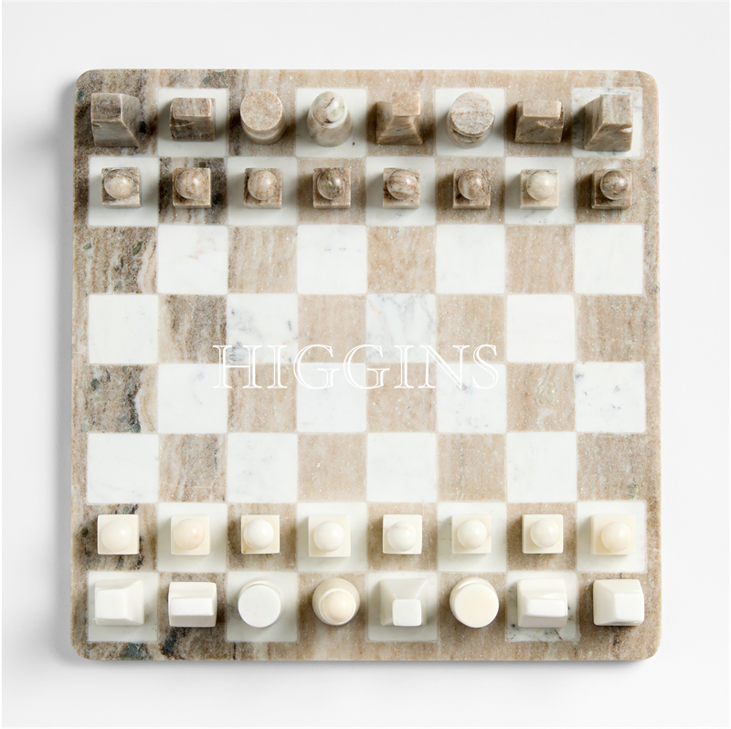 In stock and ready to ship Loading...Crate & BarrelSKU 295360Personalized Marble Post Modern Chess Game$314.95includes $15 personalization feeFree Shipping Eligible0 of 1 purchasedAdd to Cart
