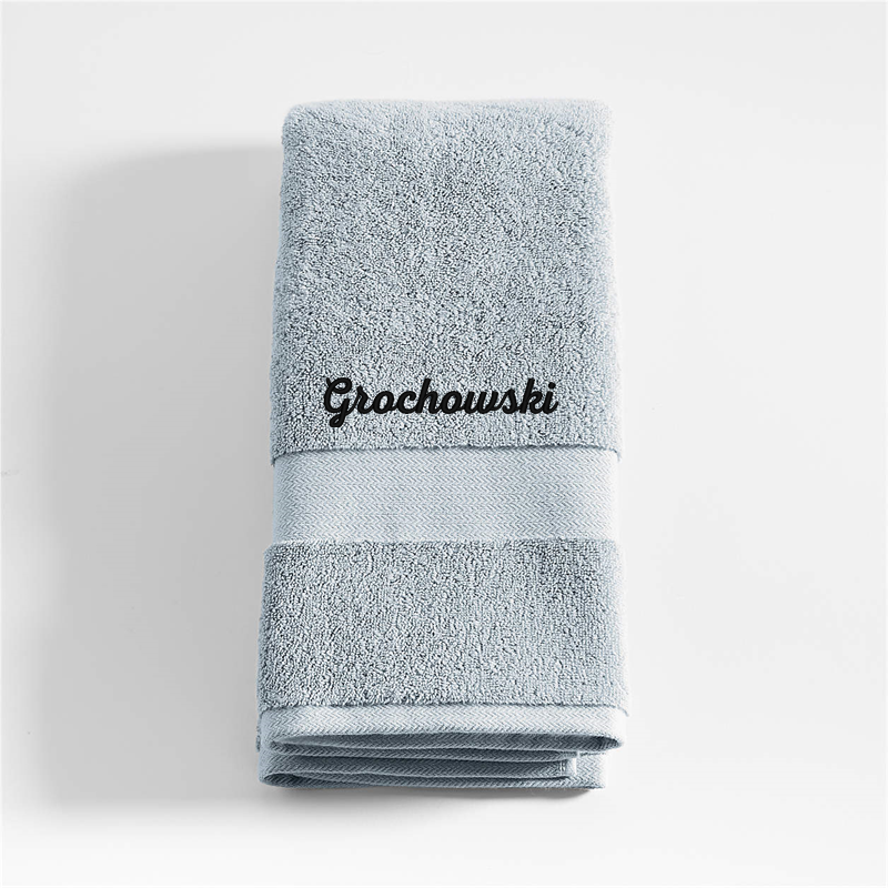 In stock and ready to ship Loading...Crate & BarrelSKU 218124Personalized Organic Turkish Cotton Mist Blue Hand Towel$39.95includes $15 personalization feeShips free0 of 1 purchasedAdd to Cart