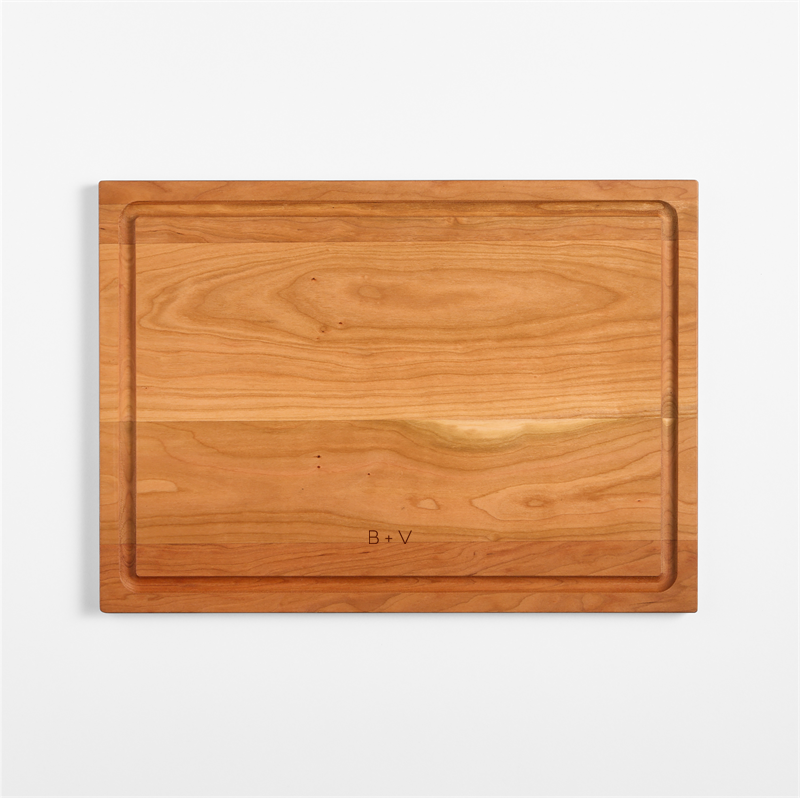 In stock and ready to ship. Loading...Crate & BarrelSKU 462782Personalized Crate & Barrel Reversible Cherry Wood Cutting Board 18"x13"x0.75"$104.95includes $15 personalization feeShips free0 of 1 purchasedAdd to Cart