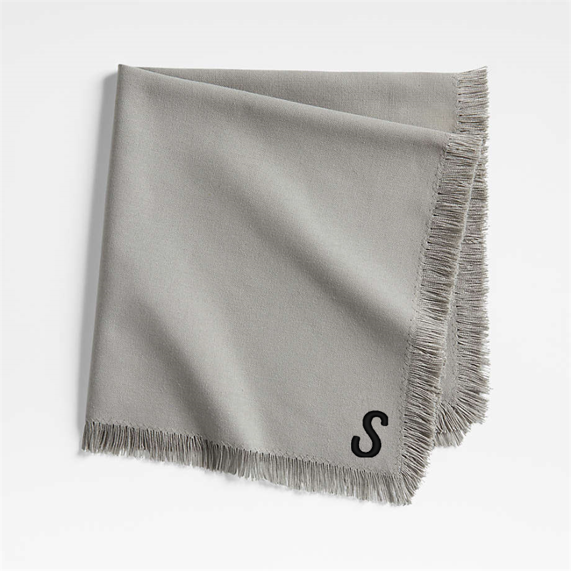 No longer available online. Loading...Crate & BarrelSKU 544883Personalized Craft Light Grey Organic Cotton Fringe Napkins, Set of 8$143.60includes $32 personalization feeShips free0 of 1 purchasedAdd to Cart