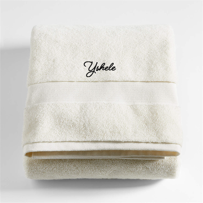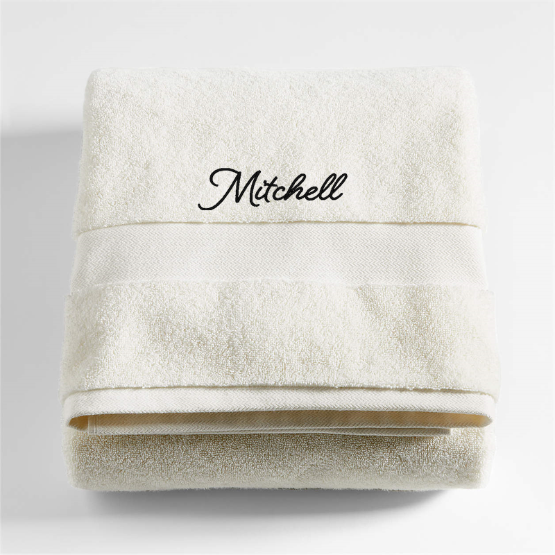 In stock and ready to ship Loading...Crate & BarrelSKU 587014Personalized Organic Turkish Cotton Ivory Bath Sheet$74.95includes $15 personalization feeShips free0 of 1 purchasedAdd to Cart