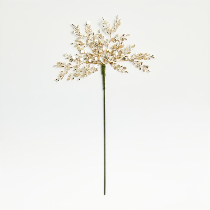 Add a shower of sparkles to your holiday decor with our exclusive gold pick Christmas tree ornament. Handcrafted by highly skilled artisans, the delicate spray features metal flecks, beads and sequins that shine like glass, reflecting the light from candles and string lights. Stick a pick in a flower arrangement, amongst a wintry tablescape or in your Christmas tree to instantly create festive glamour.