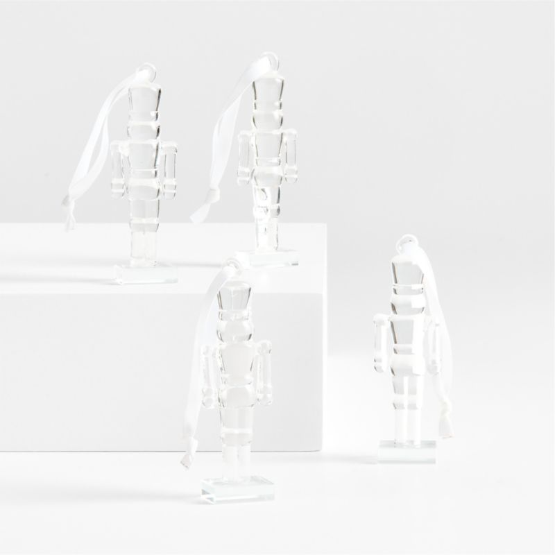 Evoking ice sculptures, our clear glass Christmas ornaments glimmer on the tree. Talented artisans blow each one by hand, transforming durable borosilicate glass into classic nutcrackers (that only appear to be delicate). The look is minimalist and modern with the perfect touch of icy charm—especially paired with the coordinating reindeer- and present-shaped ornaments.