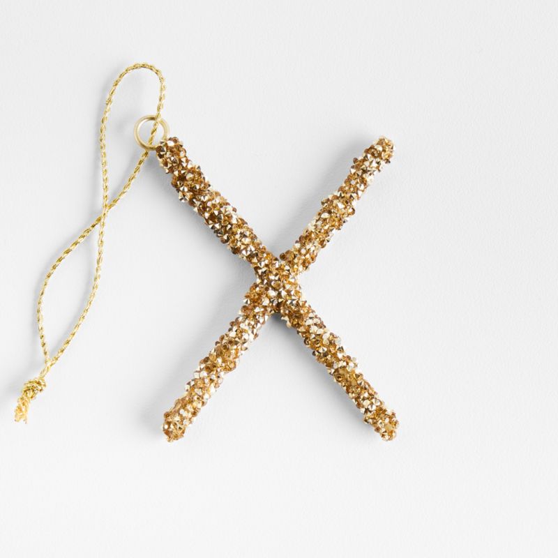 Gold Beaded Monogram "X" Letter Christmas Tree Ornament