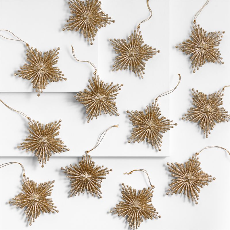 Gold Glitter Starburst Christmas Tree Ornaments, Set of 12