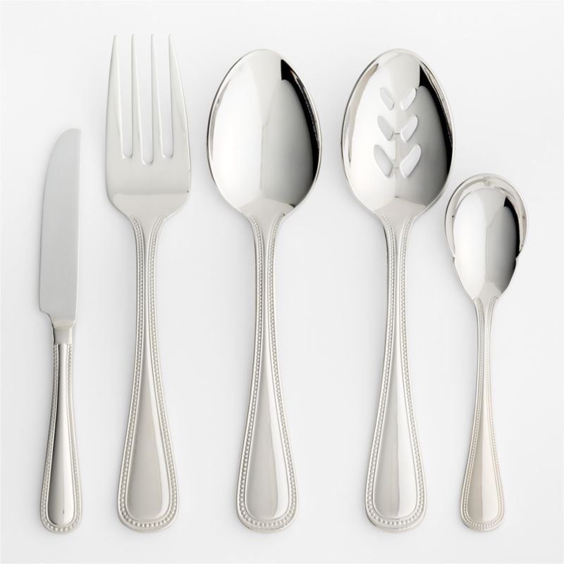 In the gracious tradition of our Grand Hotel flatware, this new version is scaled up and even more substantial in weight. Classically designed, the serving pieces feature intricate beadwork accentuated with a subtle dome in the center of the handles.
