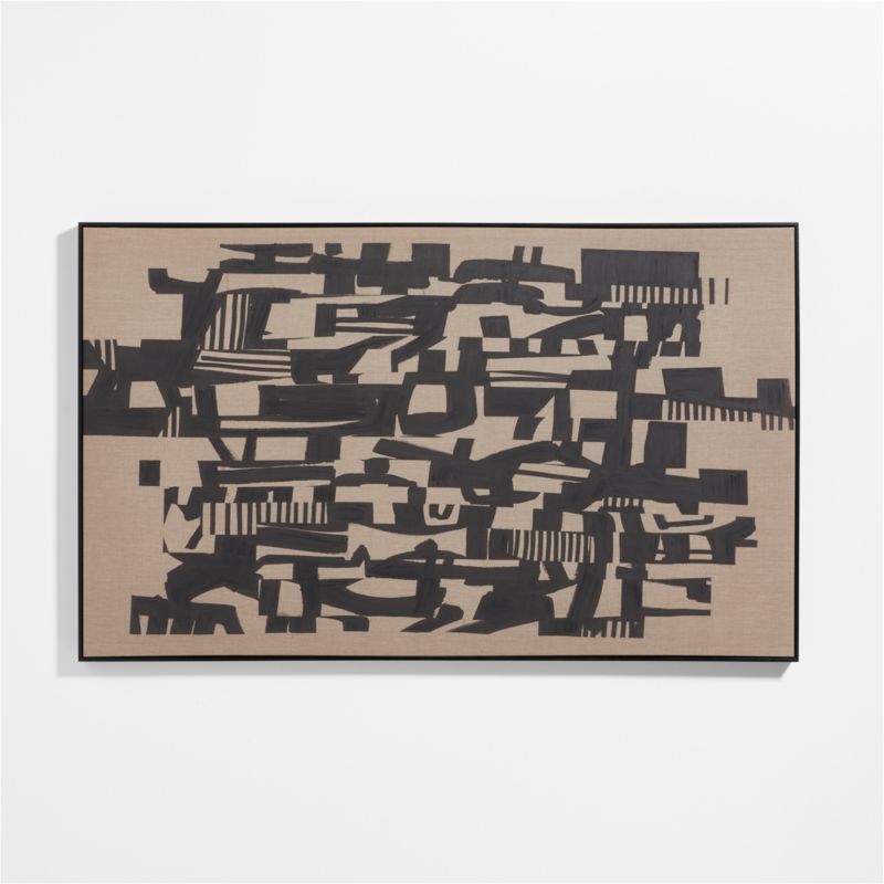 "Graphic Remix" layers geometric shapes in a dynamic, abstract piece that vibrates with the energy of a busy street or an ever-changing cityscape. Embellished with paint by hand, our giclée print on natural linen faithfully reproduces the complexity of Lottie Anderson's original collage. The visible weave of the linen enhances the tactile qualities of this large work. We've presented the textural wall art in a black floater frame, ready to be hung horizontally or vertically over a sofa, at the top of a flight of stairs or anywhere its bold energy can be appreciated.