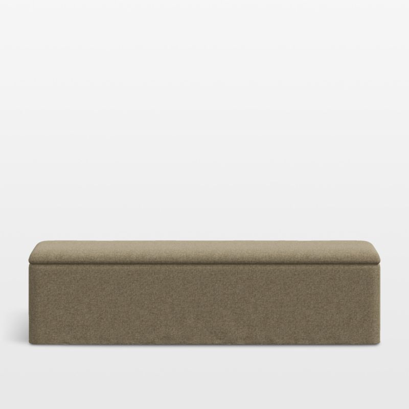 Our Greenwich bench stores extra blankets, pillows and off-season clothing with the easy, breezy look of a slipcovered sofa. Upholstered from top to bottom, the storage bench has a comfy cushioned seat that lifts up to reveal a roomy interior. We love the bench parked at the end of a bed, providing convenient closed storage and a comfy place to sit while getting dressed.