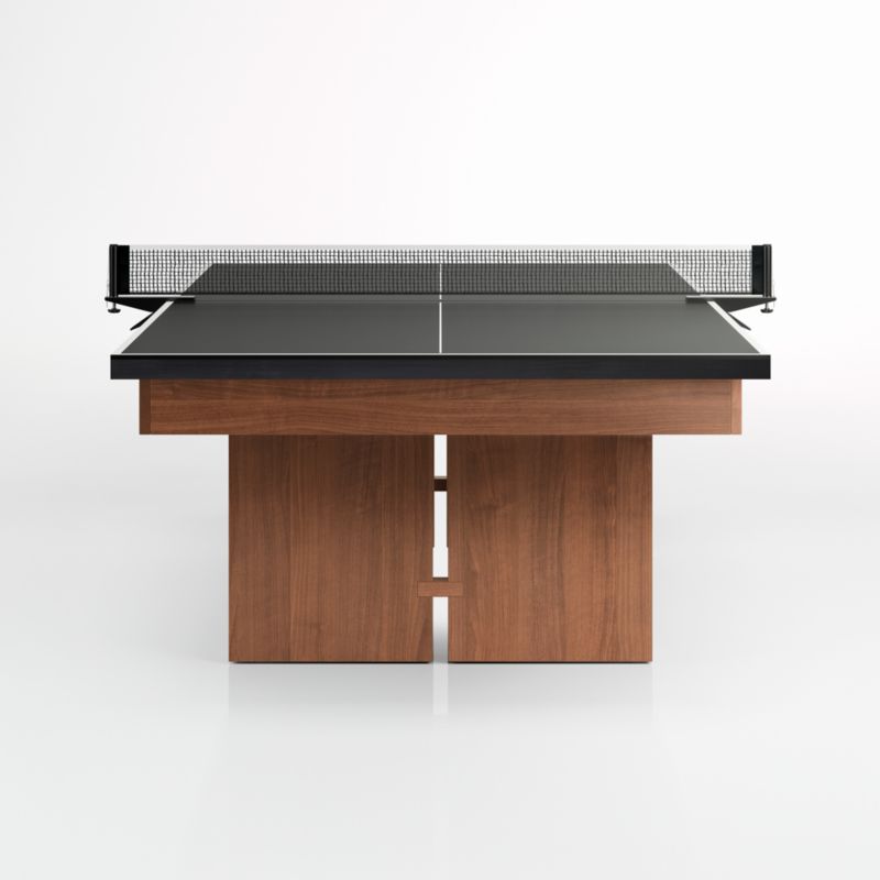 This stunning piece combines two classic game tables in one. Made for us exclusively by Imperial USA, this table spares no detail in bringing you the ultimate game of pool in a clean, modern design you'll treasure for years. When you're in more of a table tennis mood, simply add the topper and net. Everything's included to get games going, including four maple cues, billiard balls, ball rack, chalk, and more, plus table tennis paddles, balls and net. Crafted of beautifully grained black walnut with a warm honey finish, this pool table is not only handsome, it is specially constructed to last and perform—made with one-inch thick slate and oversized, interlocking beams to keep the cabinet from warping or sagging. We've covered the table in Teflon-coated grey felt, and it features honey-finished black walnut rails with deep charcoal bronze sights and charcoal leather drop pockets.