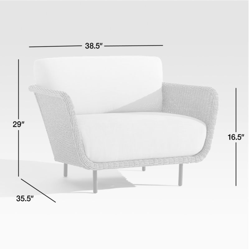 The definition of coastal modern, our Grotto outdoor collection brings a breezy look to classic wicker with sculpted silhouettes and clean-lined, sink-in cushions. All-weather resin wicker weaves the lounge chair's breezy frame with rounded edges in one continuous flow. Soft, boldly proportioned cushions covered in ivory polyester beckon with a plush seat and a pillow back. Slim stainless steel legs finished in matte black bring in an element of mixed-material cool. The Grotta outdoor wicker lounge chair is a Crate & Barrel exclusive.
