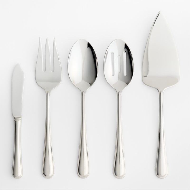 Simply elegant, this heavy-gauge pattern features a bright mirror finish. Rounded handles have raised centers for a dimensional effect. Suitable for both casual and formal dining. Stylish serving pieces complete our Halsted flatware or complement other simple patterns.