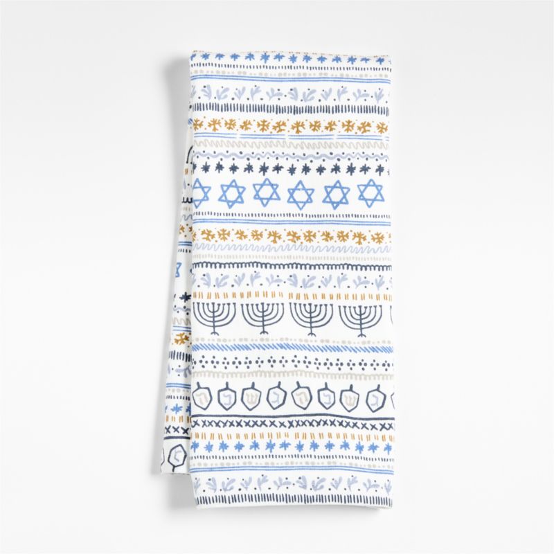Our wintry dish towel arranges the traditional icons of Hanukkah in a festive Fair Isle pattern. Rows and rows of dreidels, menorahs, Stars of David and more are printed in shades of blue and gold on snow-white organic cotton that reverses to absorbent terrycloth. Use our dish cloth to dry hands, counters and dishes throughout the holiday season—or keep a few on hand as gift wrap for homemade baked goods and host gifts.