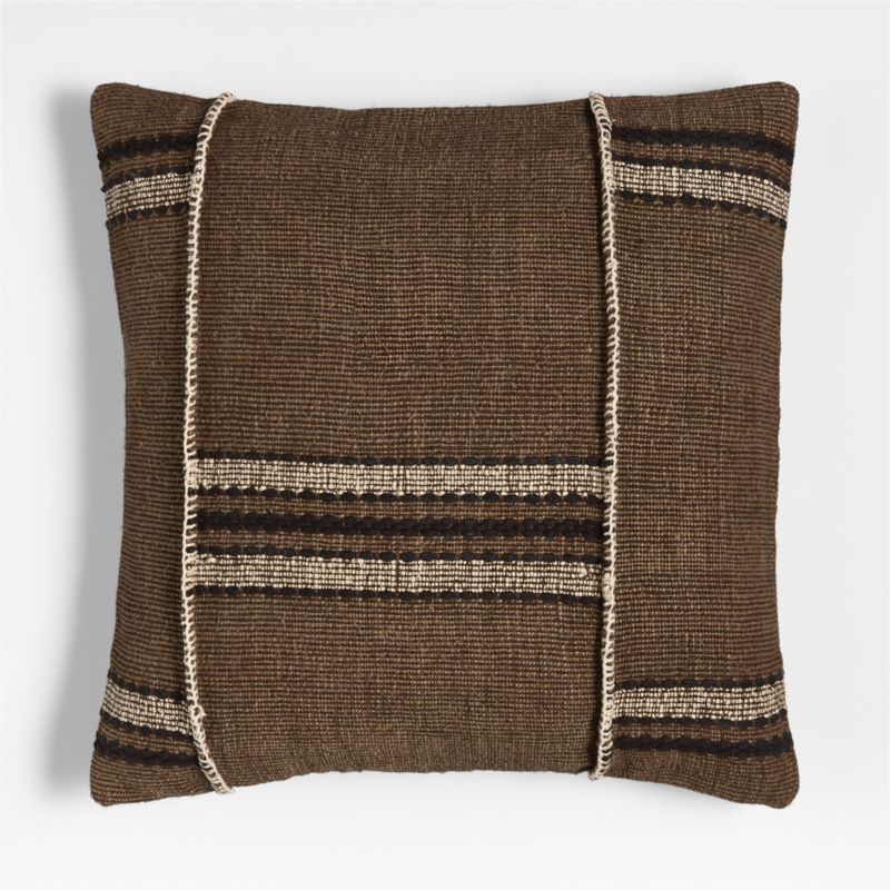 Toss Helena on a sofa, armchair or bed to instantly add vintage charm and artisanal authenticity. Woven with natural linen, silk and cotton fibers in deep brown, black and white, the throw pillow boasts a variety of weaves for understated pattern and texture. Skilled craftspeople unite the panels of elevated fabric with a white blanket stitch that's meant to be seen. Our exclusive striped pillow includes your choice of a plush feather-down or lofty down-alternative insert.