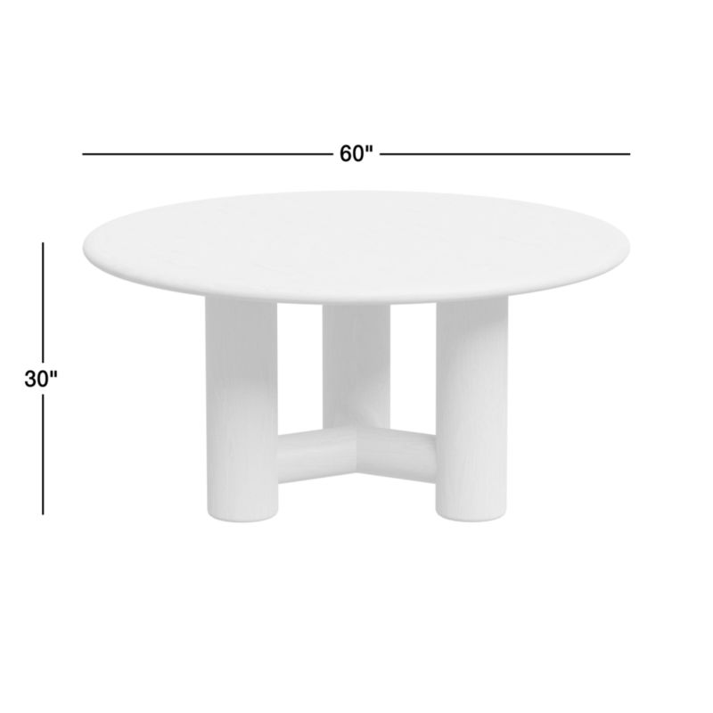 Rustic yet refined, our Henrik dining table makes a major statement in a modern casual kitchen or dining room. The sculptural design sets a substantial top on a tripod base of bold cylindrical legs connected by intersecting stretchers. Bullnose edging makes the table a comfortable place to gather. Finished with a natural rye finish and ivory ceruse, the oak wood table seats up to six.