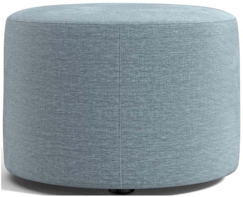 Simple geometric shapes and clean lines make our Highland ottomans so versatile. Pristine tailoring in textured-weave performance fabric enhances the purity of form with topstitching for added definition. Able to partner with a wide range of furniture styles, the round ottoman serves as an extra seat, footrest or casual cocktail table.