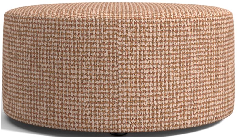 Simple geometric shapes and clean lines make our Highland ottomans so versatile. Pristine tailoring in a textured-weave performance fabric enhances the purity of form with topstitching for added definition. Able to partner with a wide range of furniture styles, the round ottoman serves as an extra seat, footrest or casual cocktail table.