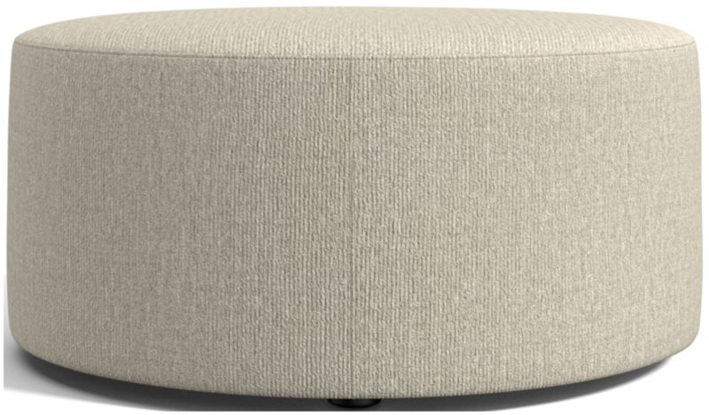 Simple geometric shapes and clean lines make our Highland ottomans so versatile. Pristine tailoring in a textured-weave performance fabric enhances the purity of form with topstitching for added definition. Able to partner with a wide range of furniture styles, the round ottoman serves as an extra seat, footrest or casual cocktail table.