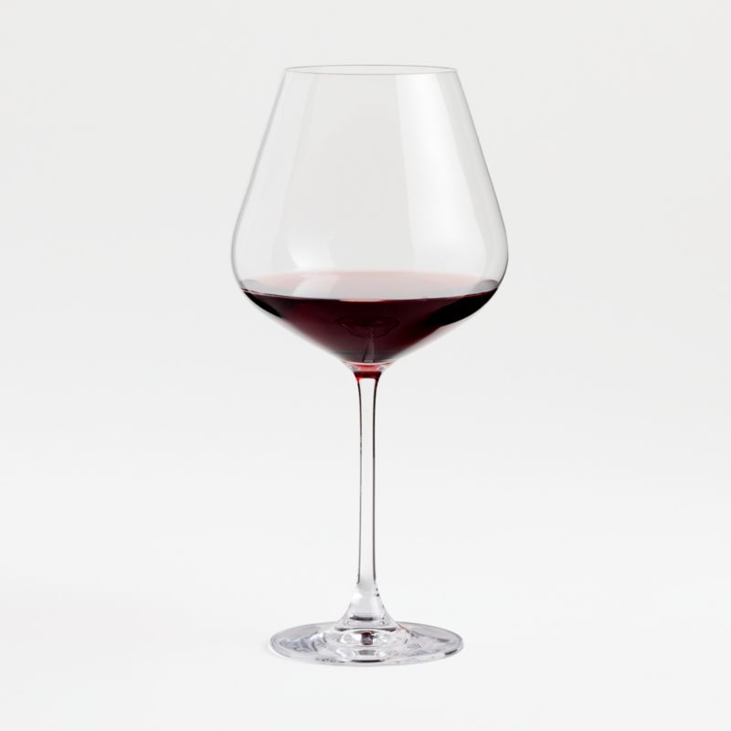 Our oversized wine glass has a refined modern profile with flared bowl, slender stem and fine rim. With its clean lines and unique curves, the Hip large red wine glass is an updated take a classic. Despite its delicate appearance, this glass is dishwasher-safe for easy cleanup after dinner parties, holiday gatherings and weeknight meals. Complete your glassware collection with our Hip white wine, champagne and 19-ounce red wine glasses. Voted the Best Large Wine Glass by Forbes, our Hip oversized red wine glass is a Crate & Barrel exclusive.
