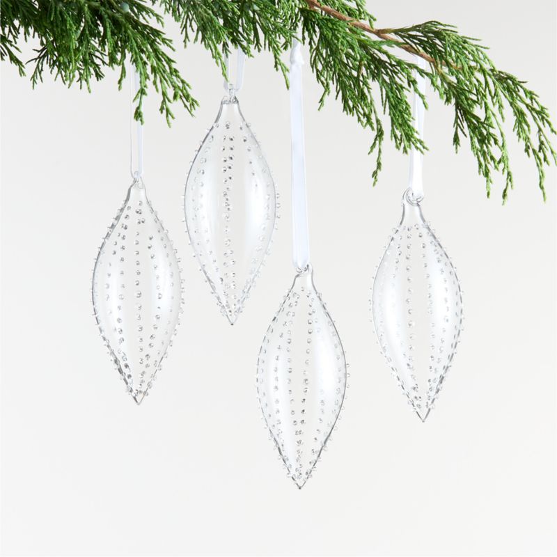 Super popular in Victorian times, hobnail glass gets a fresh update in our ornaments. Rows of raised knobs—resembling the hobnail studs once used on boot soles—outline the drop-shaped ornaments with charming texture. Crafted of clear glass that's unexpectedly durable, the four ornaments are a modern, minimalist take on a classic and perfect for an heirloom-inspired Christmas tree.