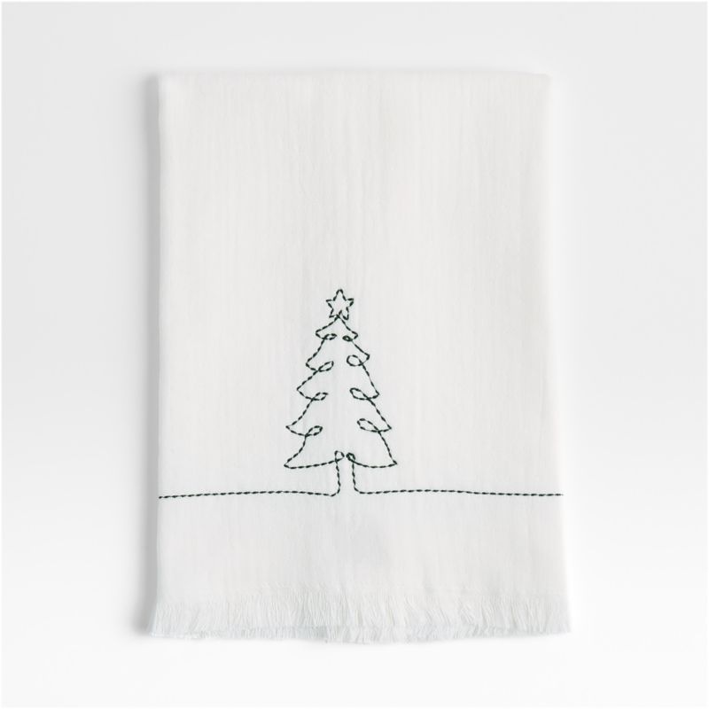 Our holiday-themed guest towel reimagines a popular holiday icon for a look that's festive yet contemporary. A single Christmas tree is fancifully rendered with a continuous line of green embroidery against a snow-white backdrop. Made of absorbent terrycloth, the hand towel pairs with our Holiday Reindeer towel for a red and green combo that brings seasonal cheer to a powder room or guest bathroom.