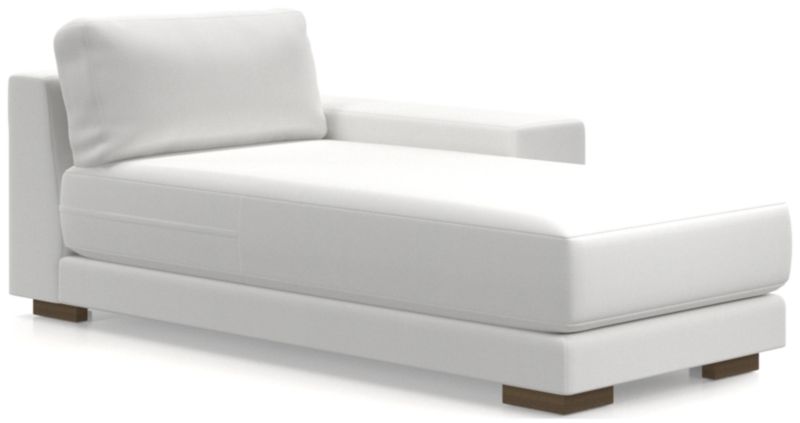 Inspired by modern European furniture design, our Horizon sectional sits low and relaxed while looking quintessentially contemporary. The right-arm chaise has a thick bench seat that sits deep with medium-soft cushioning and a foot-wide, well-padded armrest that serves as a momentary perch for conversing or a temporary landing spot for a plate of hors d'oeuvres. The pillow back cushion takes a relaxed angle while providing comfortable support. Combine the right-arm chaise with other Horizon pieces to form a conversation-sparking sectional. Horizon is available in stock and custom fabric options.