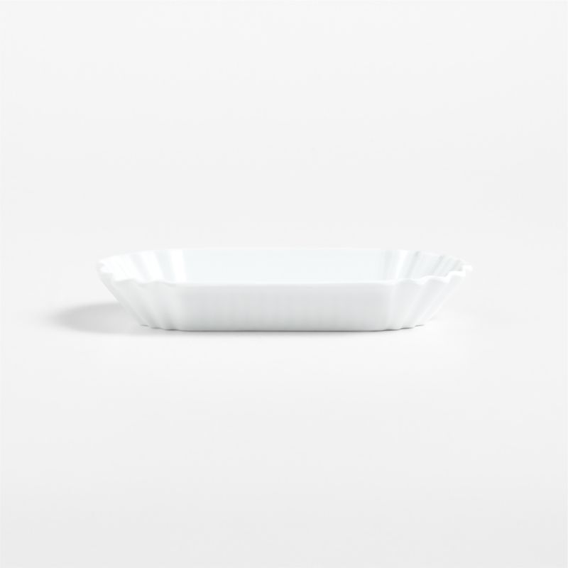 Fooling the eye with the look of a classic paper hot dog tray, our cheeky melamine version is a must-have for al fresco entertaining. Durable melamine shapes the reusable dish, mimicking the ruffled border of the summertime stalwart. Sturdier than paper and reusable for countless meals, the tray supports fully loaded hot dogs, corn dogs or brats without flopping and only requires one hand to hold. And cleans up easily in the dishwasher after every backyard barbecue, tailgate or patio party.