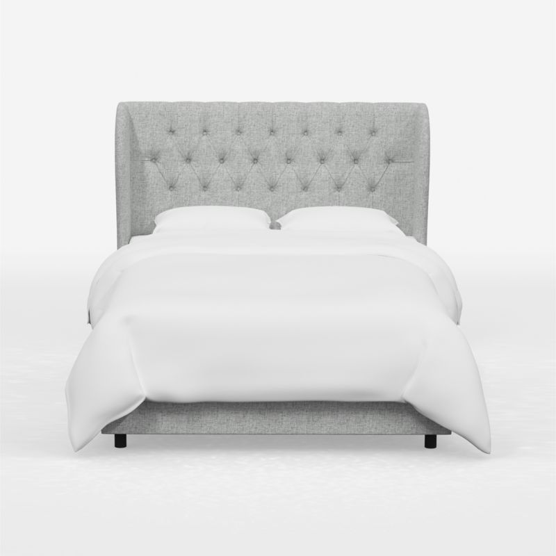 Tufted by hand by skilled craftspeople, the made-to-order Hubbard bed brings traditional styling and artisanship to the modern bedroom. The curved wingback headboard creates a subtle sheltering effect, enveloping you in soft upholstery as you read or recline. Linen-blend fabric in pale grey completes the luxurious look and feel. Fitted with fully upholstered rails for a unified look and all-around softness, the Hubbard pumice-hued bed instantly elevates the bedroom.