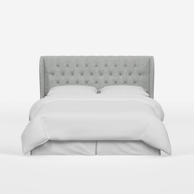Tufted by hand by skilled craftspeople, the made-to-order Hubbard headboard brings traditional styling and artisanship to the modern bedroom. The curved wingback design creates a subtle sheltering effect, enveloping you in soft upholstery as you read or recline. Pale grey, linen-blend fabric completes the luxurious look and feel. Attaching easily to any standard bed frame, the pumice-hued Hubbard upholstered headboard instantly elevates the bedroom.
