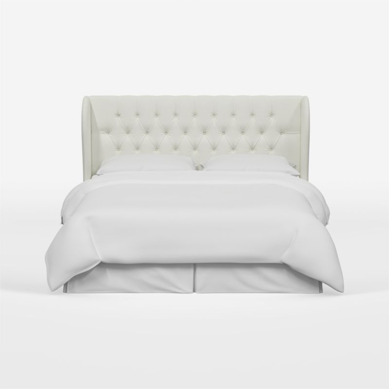 Tufted by hand by skilled craftspeople, the made-to-order Hubbard headboard brings traditional styling and artisanship to the modern bedroom. The curved wingback design creates a subtle sheltering effect, enveloping you in soft upholstery as you read or recline. Snowy linen-blend fabric completes the luxurious look and feel. Attaching easily to any standard bed frame, the Hubbard white upholstered headboard instantly elevates the bedroom.