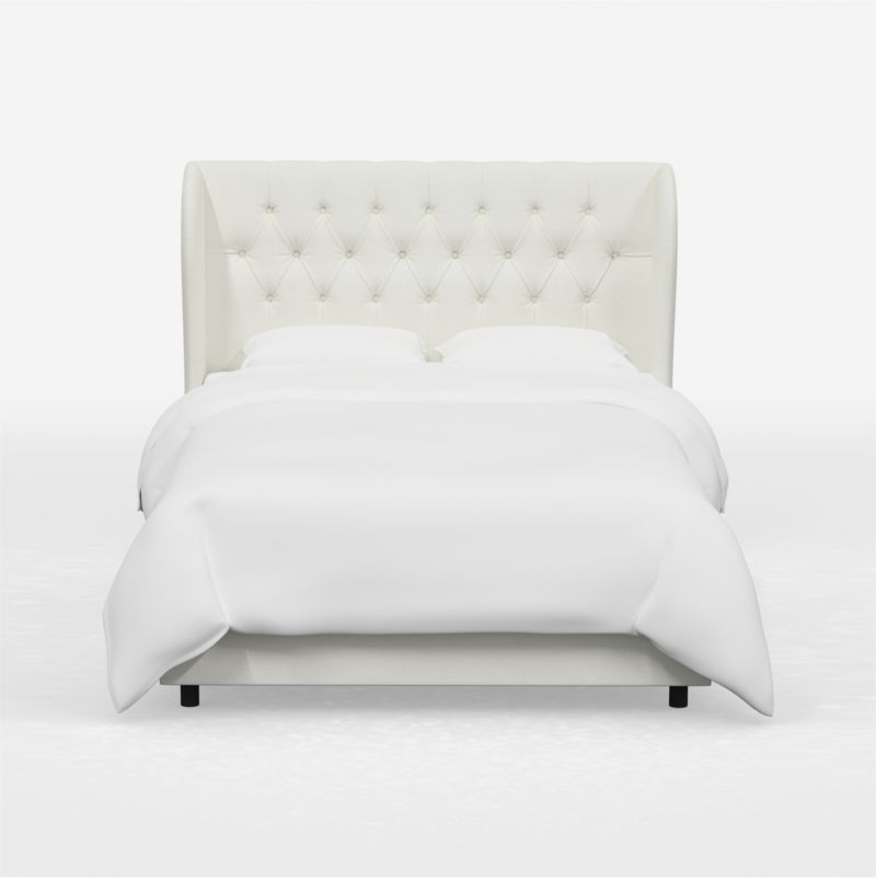 Hubbard Linen White Wingback Upholstered Queen Bed