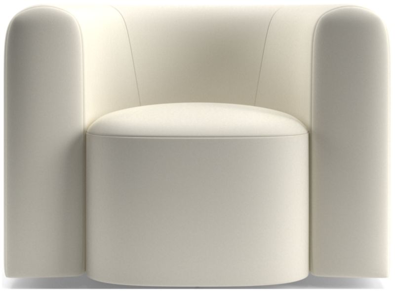 Hugger's sheltering silhouette flows seamlessly from arm to back to create a nook for nestling. Striking for its sculptural curves, the swivel chair offers a tight seat that strikes a comfortable balance between formal and lounge-y. Ours exclusively, the modern statement chair raises slightly on inset beyond the shadow line for a floating effect. The bouclé upholstery adds irresistible texture and a fun, casual vibe.