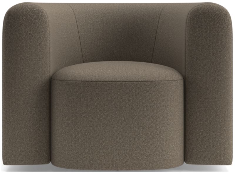 Hugger's sheltering silhouette flows seamlessly from arm to back to create a nook for nestling. Striking for its sculptural curves, the swivel chair offers a tight seat that strikes a comfortable balance between formal and lounge-y. Ours exclusively, the modern statement chair raises slightly on inset beyond the shadow line for a floating effect. The bouclé upholstery adds irresistible texture and a fun, casual vibe.