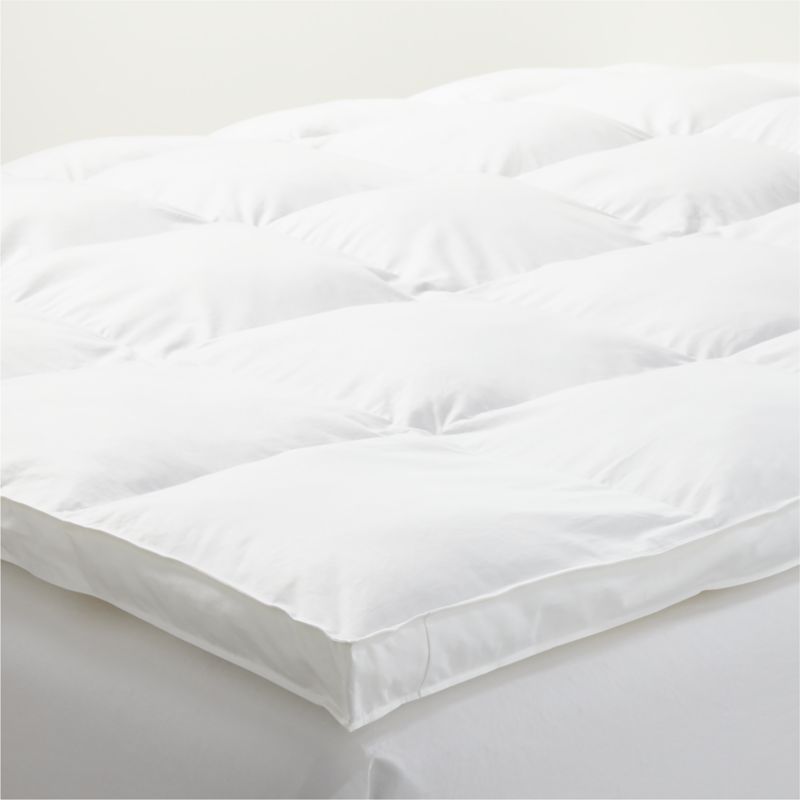 Place our dreamy white mattress topper on your bed and enjoy an extra layer of support. Covered in pure cotton with a twill weave, the hypoallergenic fiber topper has a generous depth of 2.5 inches. Edge-to-edge baffle box construction keeps the fiber equally distributed.