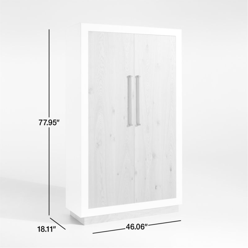 Simple yet substantial, our Ibiza storage cabinet takes inspiration from Spanish design and the effortless cool of the Mediterranean coast. A prominent frame delineates the tall cabinet with the subtle texture and off-white color of its hand-applied plaster finish. A plinth base and inset cabinet doors contrast with a light natural finish and the characteristic markings of knotty white oak. Solid oak cylindrical pulls with burnished brass brackets open the doors to reveal generous storage space with four shelves for storing books, linens, bar essentials or clothing.