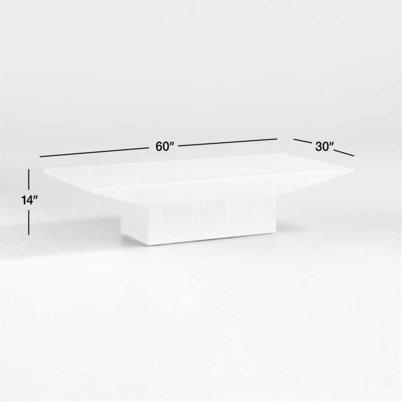 Our Icon coffee table cuts a dashing figure with dramatic angles and a contemporary silhouette. A monolithic pedestal base floats an expansive top with exaggerated reverse bevel. Made of pine veneer, the table is given a white wash finish that lightens the look and lets the wood's natural tones show through to play up the dynamic cathedral graining. This striking rectangular wood coffee table is a Crate & Barrel exclusive.