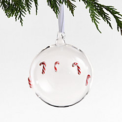 Instead of a floral centerpiece, place a pillar candle in a large glass hurricane at the center of the table. Surround it with a collection of ornaments—we like ones that reflect the glow of the flame, such as clear glass orbs, or gold and silver Christmas ornaments.