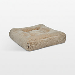 Give your dog a comfortable place to lounge throughout the day and sleep at night. Dog beds are available in a wide variety of sizes and styles. Before buying, consider your dog’s sleeping position, size, temperature needs (do they run hot or need a bit of extra warmth?) and any physical issues. A bed with an overstuffed construction, bolstered sides and a low central cushion provides extra joint support, making it especially suited for older dogs. Whatever style of bed you choose, a removable cover makes for easy cleaning. Faux leather covers resist hair and dirt while pairing beautifully with modern decor. And since it cleans up with just a wipe, it’s perfect for dogs who tend to drool. Microlinen and microvelvet bed covers resist pilling and repel pet hair, dirt and moisture. Plus, they get softer with every wash. Subtly patterned or tweed covers can help hide fur and dirt between cleanings.