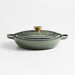 French cookware earned its reputation for a reason: Its benefits are innumerable. Durable cast iron has been prized for centuries for its ability to sustain high levels of heat. This quality makes it a candidate for both the stovetop and the oven—and, with a sturdy trivet, a place on your table (don’t forget your potholder—remember, these pans retain fiery heat). Enameled cast iron pans are coated so ingredients are less likely to stick to your pan when cooking. Fortunately, many French cookware brands today are coated in enamel or ceramic—though you might have to re-season a few times over the course of the pan’s life. Last but certainly not least, cast iron doesn’t transfer chemicals to your food. The durable material and enamel coating protect it from scratches and scrapes.
