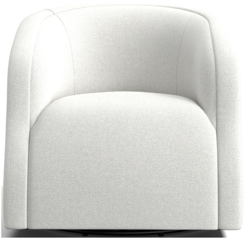 Inez snuggles with comfortable cushioning and embracing curves. Tight tailoring creates a sleek silhouette, showcasing the barrel back and waterfall seat. Swiveling a full 360°, the chair gives you a sweeping view of the room.