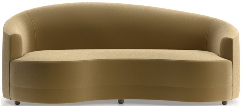 Channeling 1930s Hollywood, Infiniti takes center stage in the modern living room with glamorous curves and velvety upholstery. The sofa's flowing lines sweep an asymmetrical tight back to complement its graceful kidney-shaped seat. Tailored in super-durable, yarn-dyed polyester, the fabric captures the luxurious look and feel of soft, heathered chenille. The Infiniti Curved Back Sofa is a Crate and Barrel exclusive.