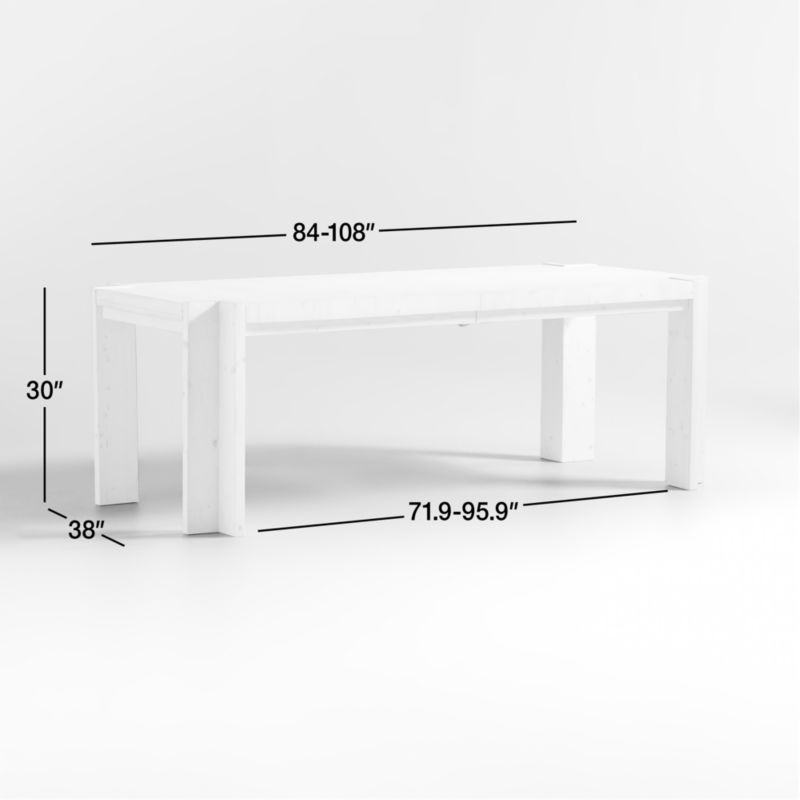 Inspired by minimalist architecture and the shifting perspectives of Modern art, our Inyo table enhances the dining room with artful geometry. The table plays with space, shaping right-angled legs, recessed aprons and a top with cut-out corners. The light-finished pine wood and long, narrow proportions give the dining table the rustic-meets-modern look of Nordic farmhouse style. Seating eight, our exclusive Inyo extension table expands to seat 10.